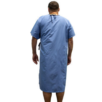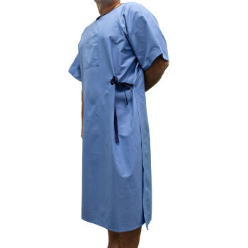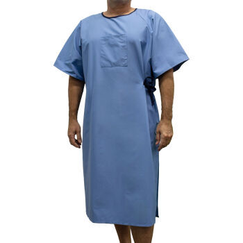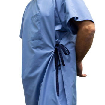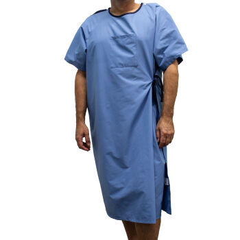- Accessible side ties promote patient independence