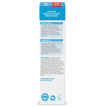 To apply, shake gently and roll onto clean, dry areas prone to excessive sweating. Apply once a day for all-day protection, no need to reapply. This antiperspirant roll-on also comes in a spray format.